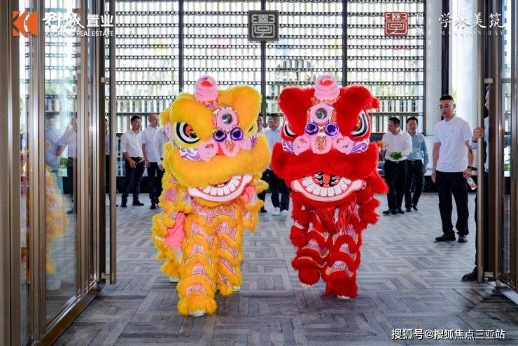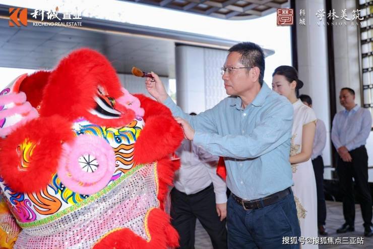 现场爆发出雷鸣般的掌声,精彩绝伦的舞狮表演也已准备就绪。领导们手执朱砂笔,从狮头到狮尾,按照中华传统舞狮文化的完整仪式为祥狮点睛赐福。刹那间,锣鼓喧天,祥狮腾跃,将现场气氛推向高潮。这一传统仪式,寓意为项目注入灵性与活力,象征着科城·学林美筑项目正式开启璀璨新篇,也寄托了对未来业主福运亨通、吉祥安康的美好祝愿。