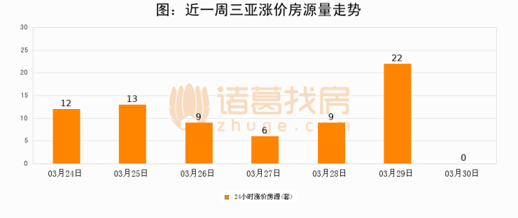 根据诸葛找房数据显示,三亚24小时涨价房源量为0套,较03月29日减少22套,环比下降100%。与此同时,涨价房源占比小幅回落,对于购房者来说是一个入市窗口期,购房者可抓住时机入市。