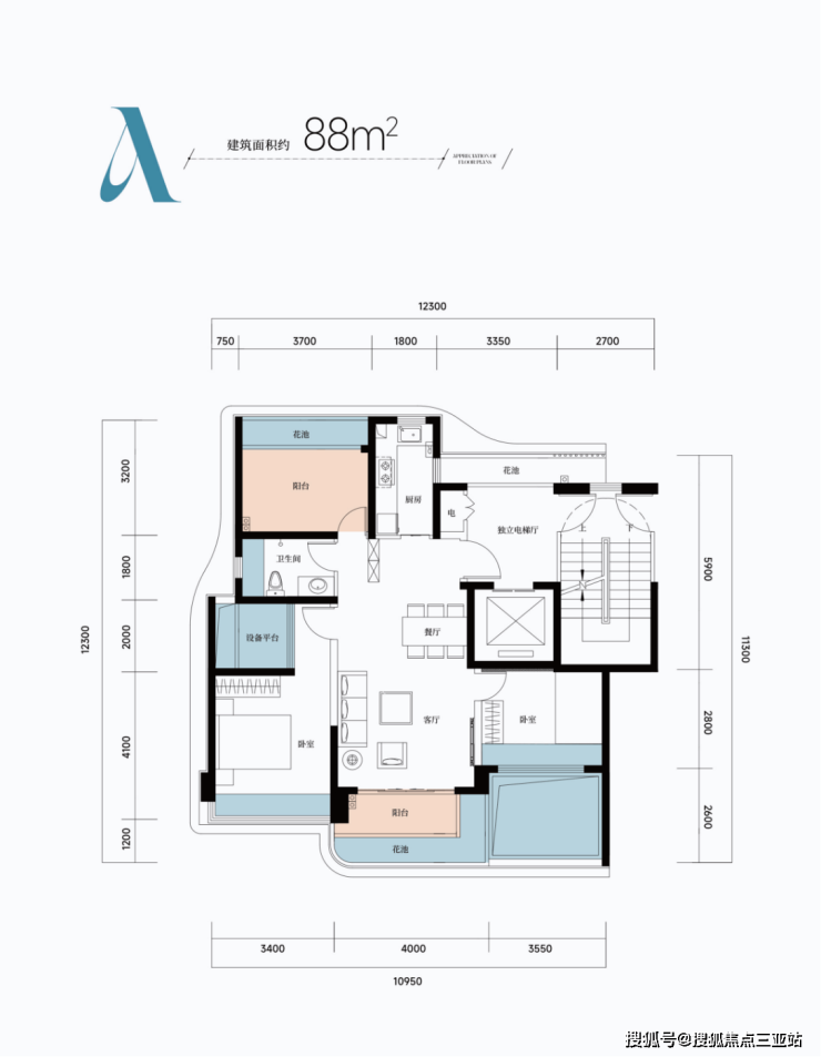 A户型:建面约88㎡