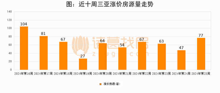 从调价房源来看,第25周三亚涨价房源77套,较上周上涨63.8%。与此同时,25周涨价房源占比提升8.37个百分点,业主信心持续恢复。