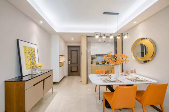 此时,精装房的优势发挥得酣畅淋漓——源于企业合作间的批量化优势,北辰府各户型都使用定制化设计,色调与整屋相结合,实用与美观兼顾。