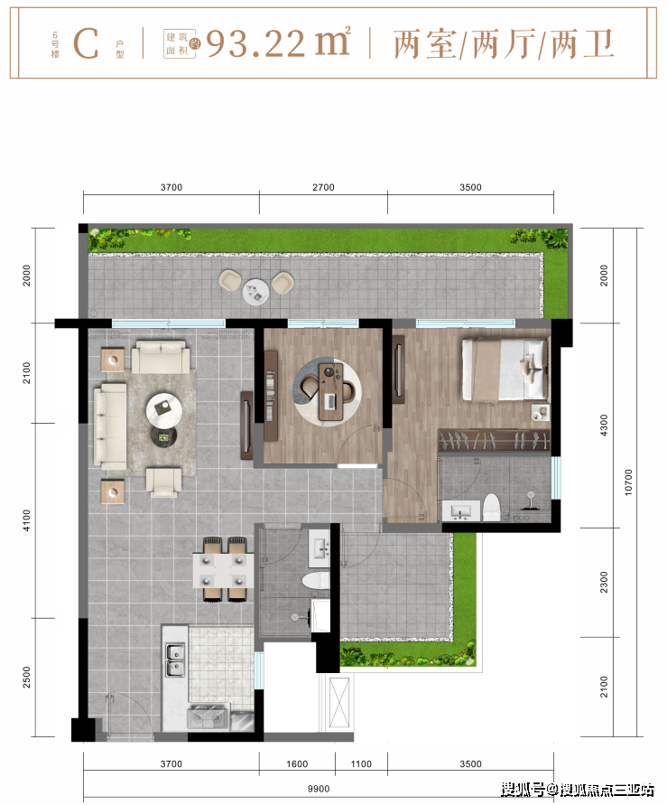 ✨ 6#楼C户型约93㎡舒阔两房两厅两卫