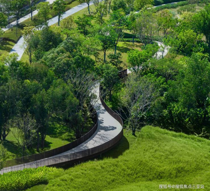海棠河生态公园规划三大主题段落,未来将打造独特茂密的热带雨林,除了是亲近自然的生境,亦会成为孩子“自由冒险”的好去处;颐养花园、椰风水岸等绿洲公园,也将构筑一条沉浸式的疗愈体验带,为慢运动爱好者提供承载地。