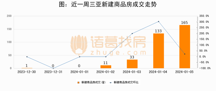 【三亚成交日报】01月05日新房成交165套;涨价房源17套
